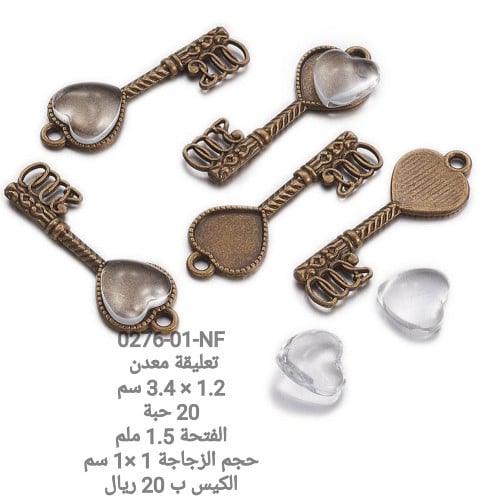 تعليقة معدن شكل مفتاح تستخدم لصناعة سلاسل الرقبة أو الميداليات أو أي عمل يدوي، ويمكن استخدامها مع الريزن او الصلصال او التطريز وغيرها من الحرف
