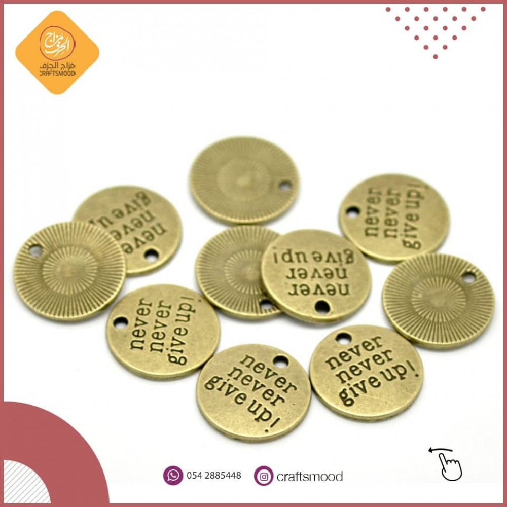تعليقة معدن بعبارة تستخدم في صناعة سلاسل الرقبة أو الميداليات أو أي عمل يدوي، ويمكن استخدامها مع الريزن او الصلصال او التطريز وغيرها من الحرف
