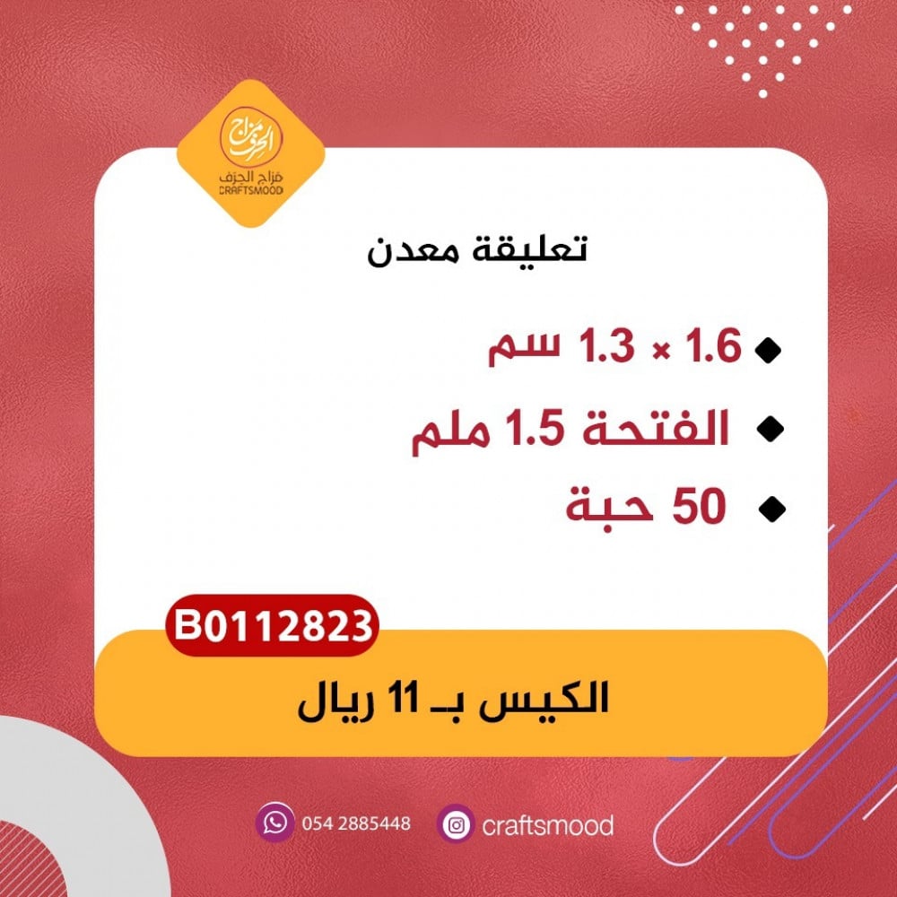 تعليقة معدن تستخدم في صناعة سلاسل الرقبة أو الميداليات أو أي عمل يدوي، ويمكن استخدامها مع الريزن او الصلصال او التطريز وغيرها من الحرف