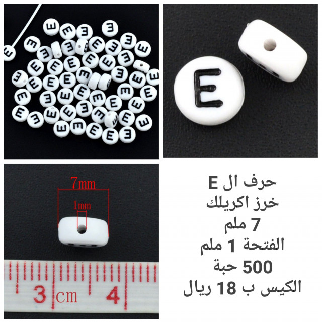 خرز حرف E، يستخدم للاعمال اليدوية كصناعة الاكسسوارات والتعليقات وغيرها