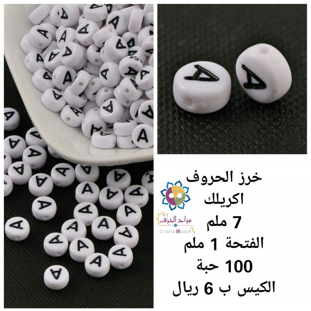 خرز حرف A ، يستخدم للاعمال اليدوية كصناعة الاكسسوارات والتعليقات وغيرها