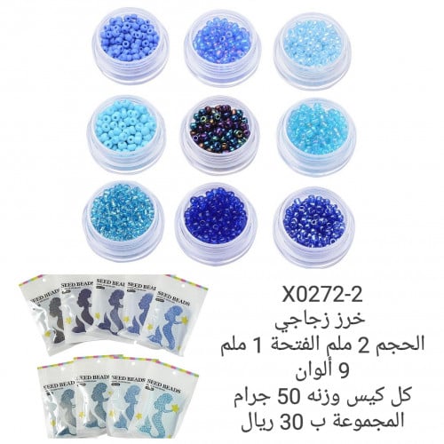 مجموعة خرز زجاجي مكونة من 9 الوان بدرجات جميلة، تستخدم للاعمال اليدوية كصناعة الاكسسوارات والتعليقات وغيرها