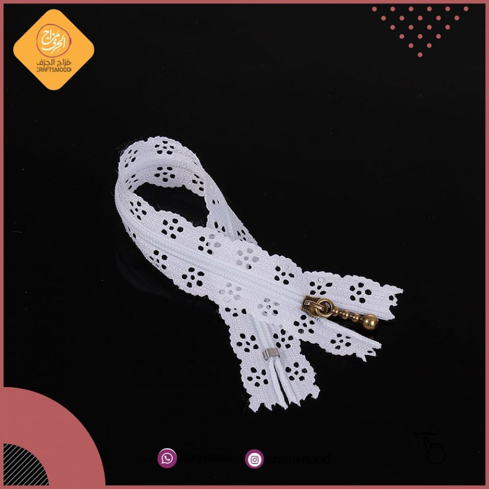 سحاب خياطة يستخدم لاغلاق وفتح القطعة مصنوع من النايلون وبلون ابيض انيق