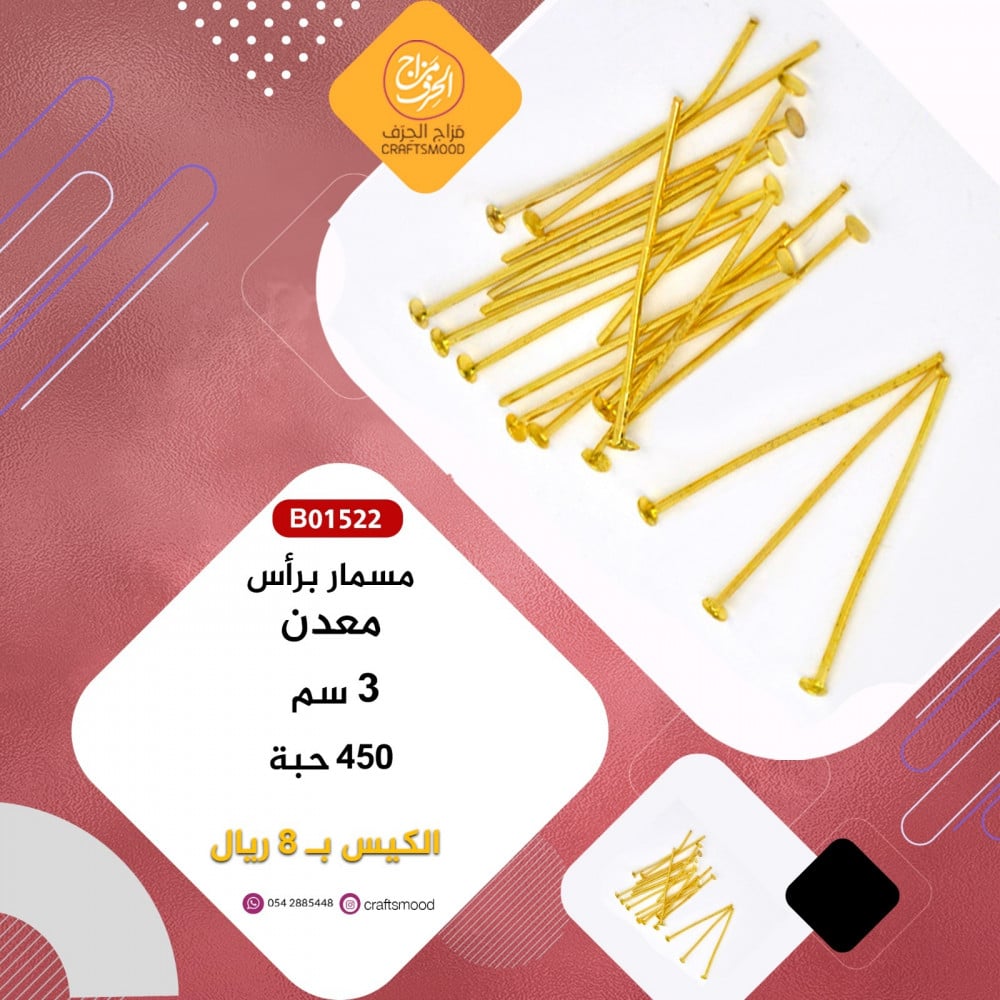 مسامير تثبيت برأس معدني بلون ذهبي انيق تستخدم للتثبيت